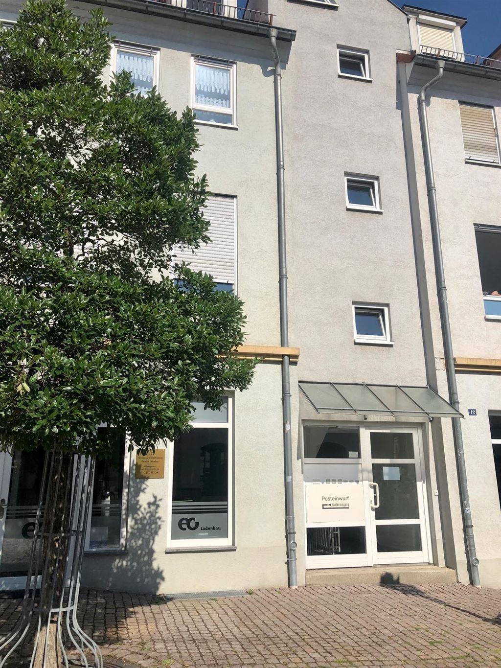 Die Räumlichkeiten befinden sich im 1. Obergeschoss des Wohn- und Geschäftshauses auf dem Roßplan.